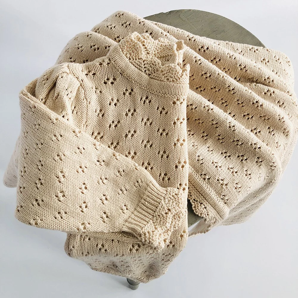 Pointelle Knit Baby Blanket Ivory Babaroo Ie